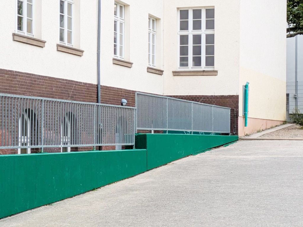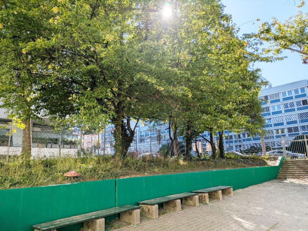 Unsere Höfe haben schon viele grüne Bäume und Sträucher, nun ist alles es noch bunter geworden. Wir haben unsere Mauern auf dem Schulhof grün gestrichen, damit die neue Plauderbank ein attraktives Umfeld erfährt. Die alte Farbe wurde mit Drahtbürsten und dem Kärcher entfernt. Dann wurde eine Grundierung aufgetragen, damit die neue Farbe länger hält. Und zum Schluss haben wir die Mauern 2-3 x gestrichen.