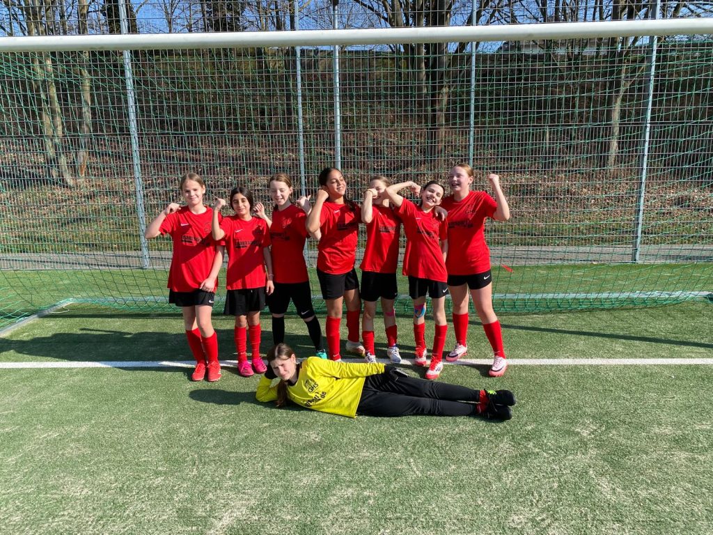 Auch die Mädchenmannschaft überzeugte mit tollen Spielen. Sie gewann vier von fünf Partien und erreichte gegen die Fußballtalentförder-Schule Elly-Heuss ein verdientes 1:1-Unentschieden. Da jedoch drei Spielerinnen altersbedingt eigentlich nicht mehr in der U14 spielberechtigt waren, startete das Team außer Konkurrenz.